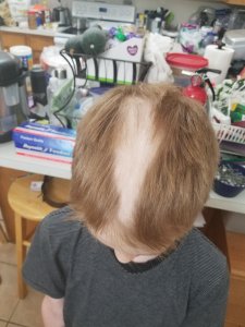 With the developing bald spots, I decided yesterday morning to reschedule the photo shoot I had planned. My friend was going to trim Eli’s hair this weekend, but that was looking like it wouldn’t be soon enough. So, I trimmed it myself and scheduled the photo shoot for 1pm in the afternoon.