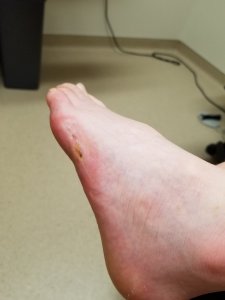 This morning Eli complained that his foot was aching and red, so I texted a picture to the surgeon who had us come in so he could check him out.