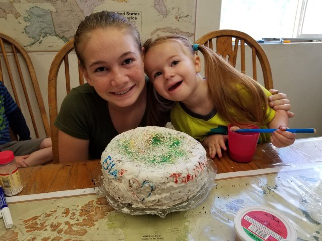 I don’t have a picture of him on September 10th, but the picture above is Eli participating at the Pinewood derby on September 13th. This picture below was taken on September 10th of two of Eli’s sisters making a cake for fun. Life was a different kind of normal then.