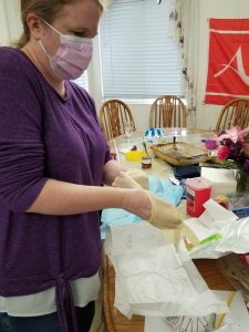 Peter got the Opsite out of my purse for me, but once I realized I needed the clave and caps, I just got them myself, rescrubbed, and put on fresh sterile gloves. Sigh. If Eli let’s me access him on Wednesday for his PET/CT, I’ll do better.