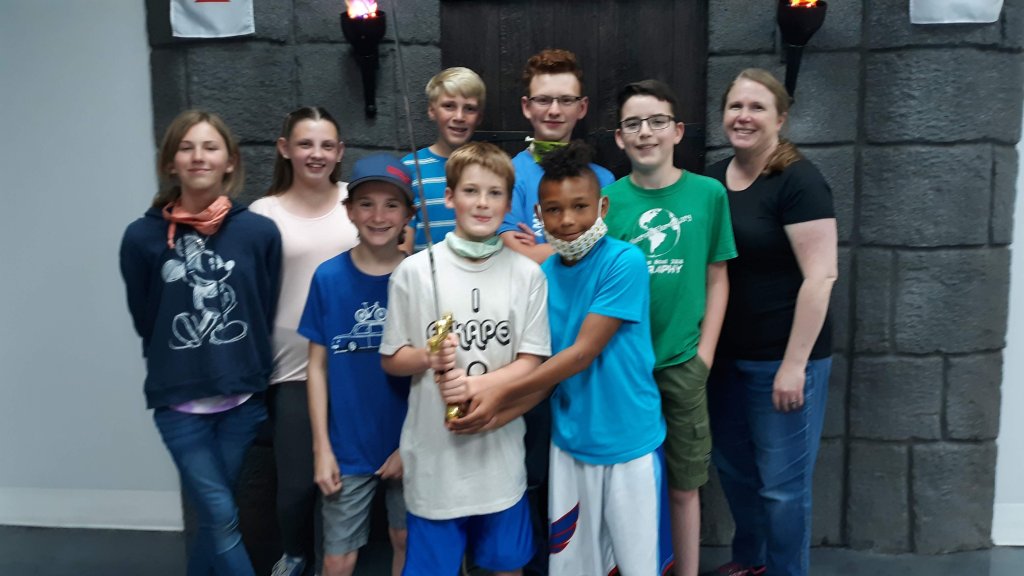 This escape room was Excalibur themed. There was an actor who offered clues from time to time. There were plenty of puzzles for us all to work on and there were three rooms, complete with a hidden passage. We all really enjoyed working together to unlock the locks. With two and a half minutes to spare, Eli slid Excalibur out of the stone.