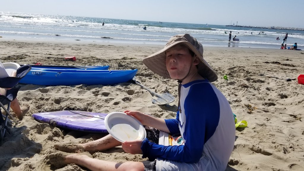 While camping at the beach at South Carlsbad, as per one of Eli’s requests, see wish #4, Eli decided he wanted a leaf from a palm tree, see wish #31. However, the rules at the campground didn’t allow for tampering with the vegetation, so we didn’t let him keep the palm leaf he had pulled off a tree there before we informed him of the rules. Yeah, yeah, we should have let him bring it home since the damage was already done, but with all the crazy rules and unpredictable reactions to minor infractions, we just didn’t want to risk potential repercussions.