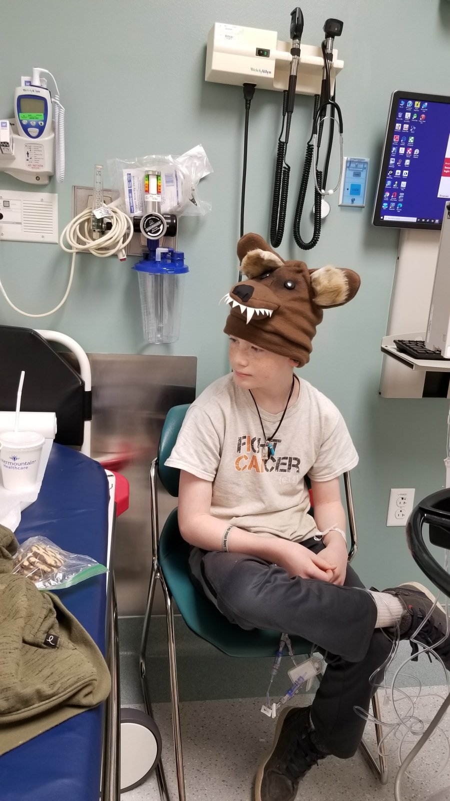 The head/neck MRI showed the tumor behind/ below Eli's eye is stable. This is good news. Our team discussed the findings and decided on two more cycles (6 weeks) of chemo, then we'll do more scans. Basically, as long as what we're doing is working, we'll keep doing, unless other toxicities appear. Thursday, we were …