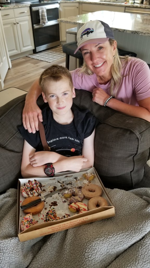 Today Eli is awake a little more, but had nausea earlier in the day. Later he ate a bunch of donuts and our friend Jackie made videos of him for us to watch later. He has slept on and off, but is otherwise alert.