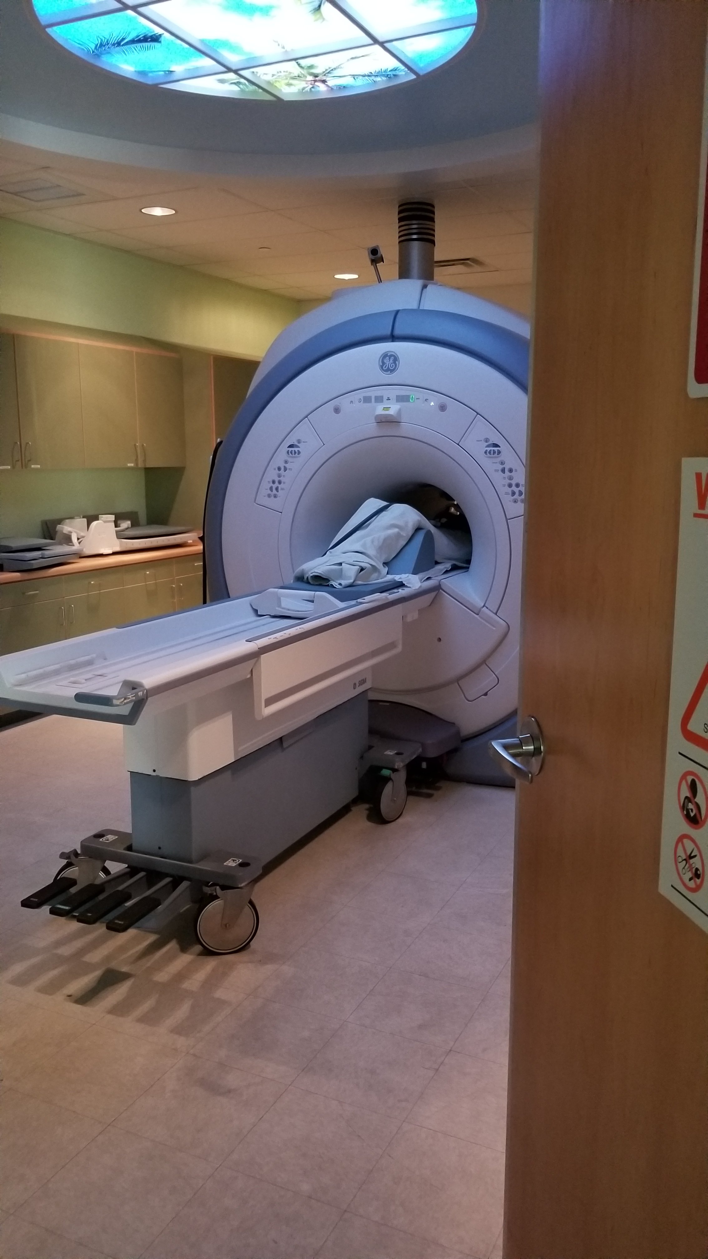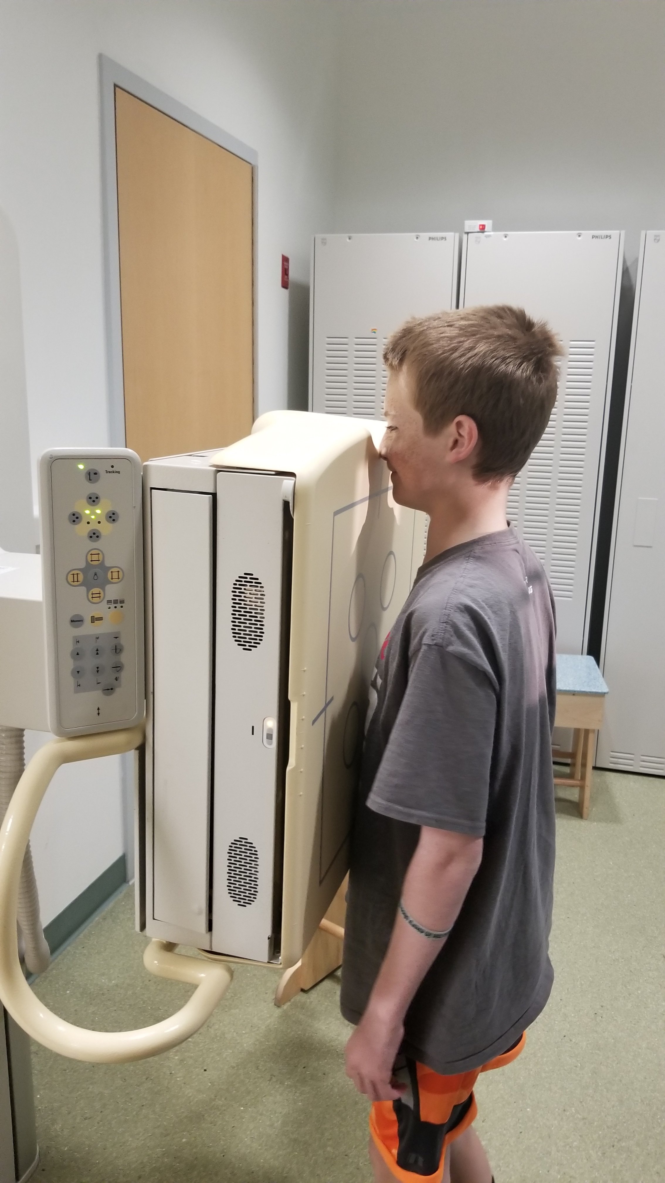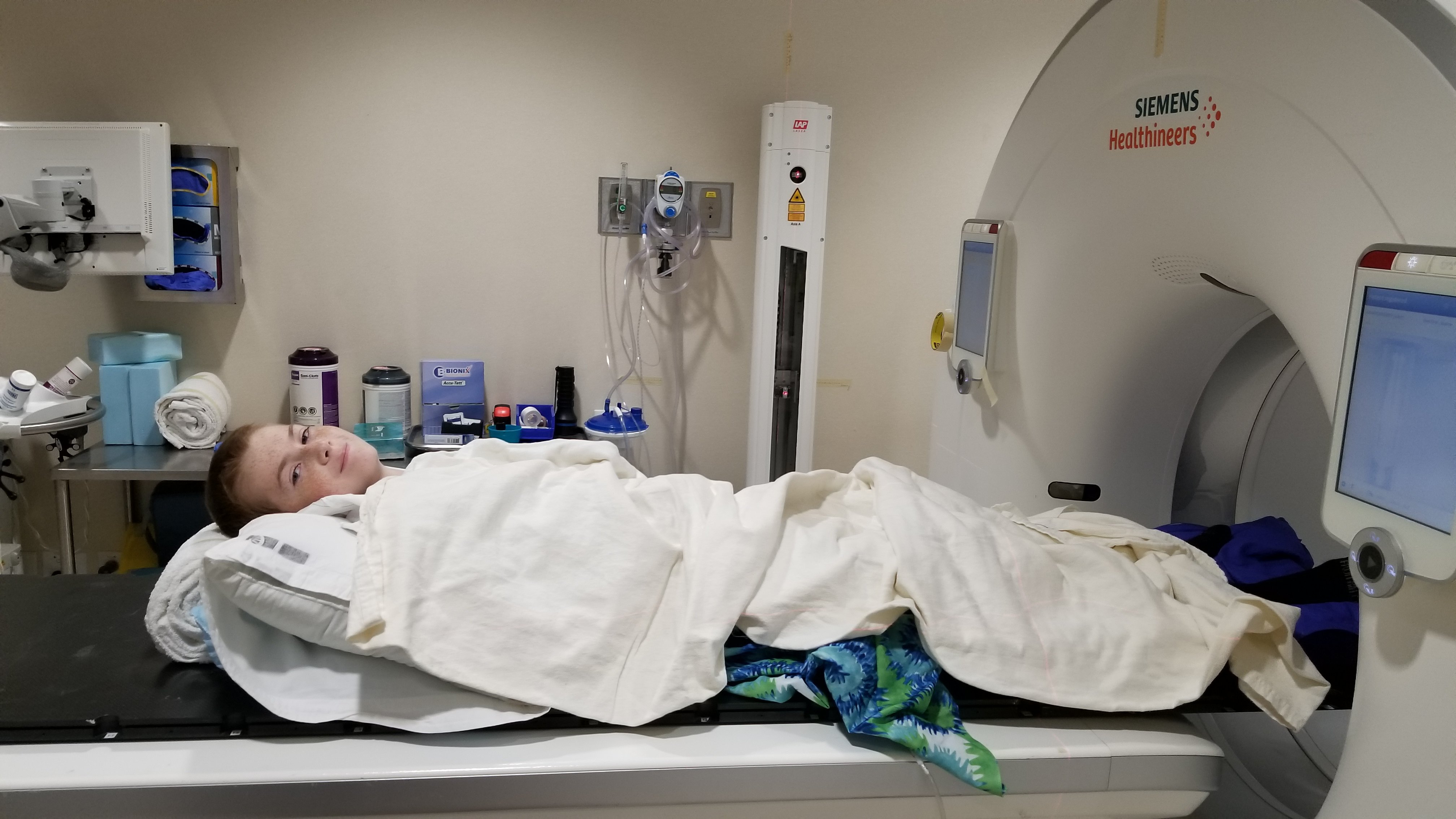 While we’re off hospice this week, we’re taking care of a few more things, like radiation prep and checking on Eli’s lingering cough. The assumption is that there is disease in or around his lungs, making him feel the need to cough. Since the radiation oncologist needed a head MRI, I asked about getting a chest xray to check for lung metastases while we were doing imaging. That’s where we are right now while I am finishing up this blog post.