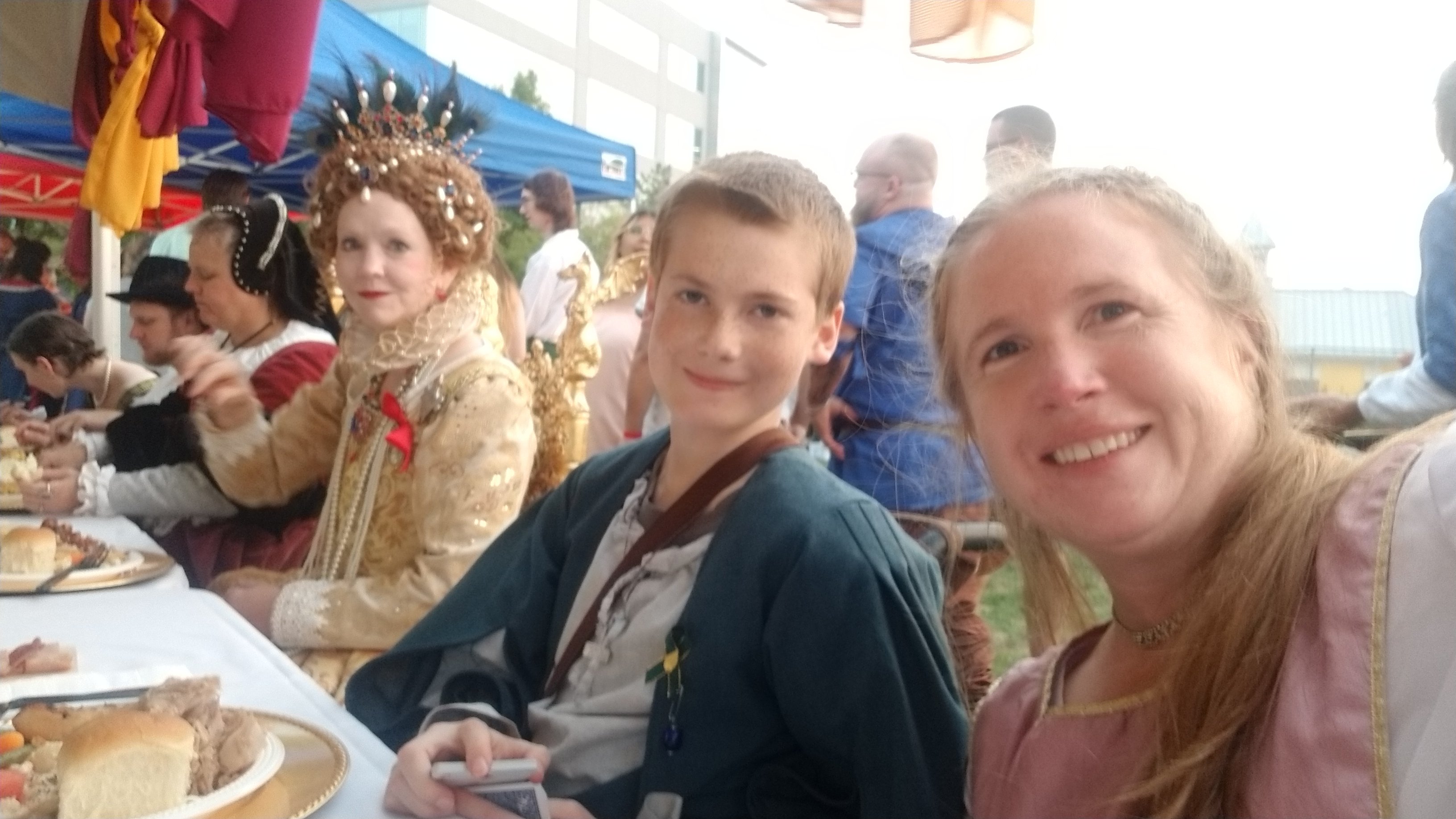 We were invited by the queen to be guests at her feast the final evening. Eli helped with a floating table magic trick during the magic show.