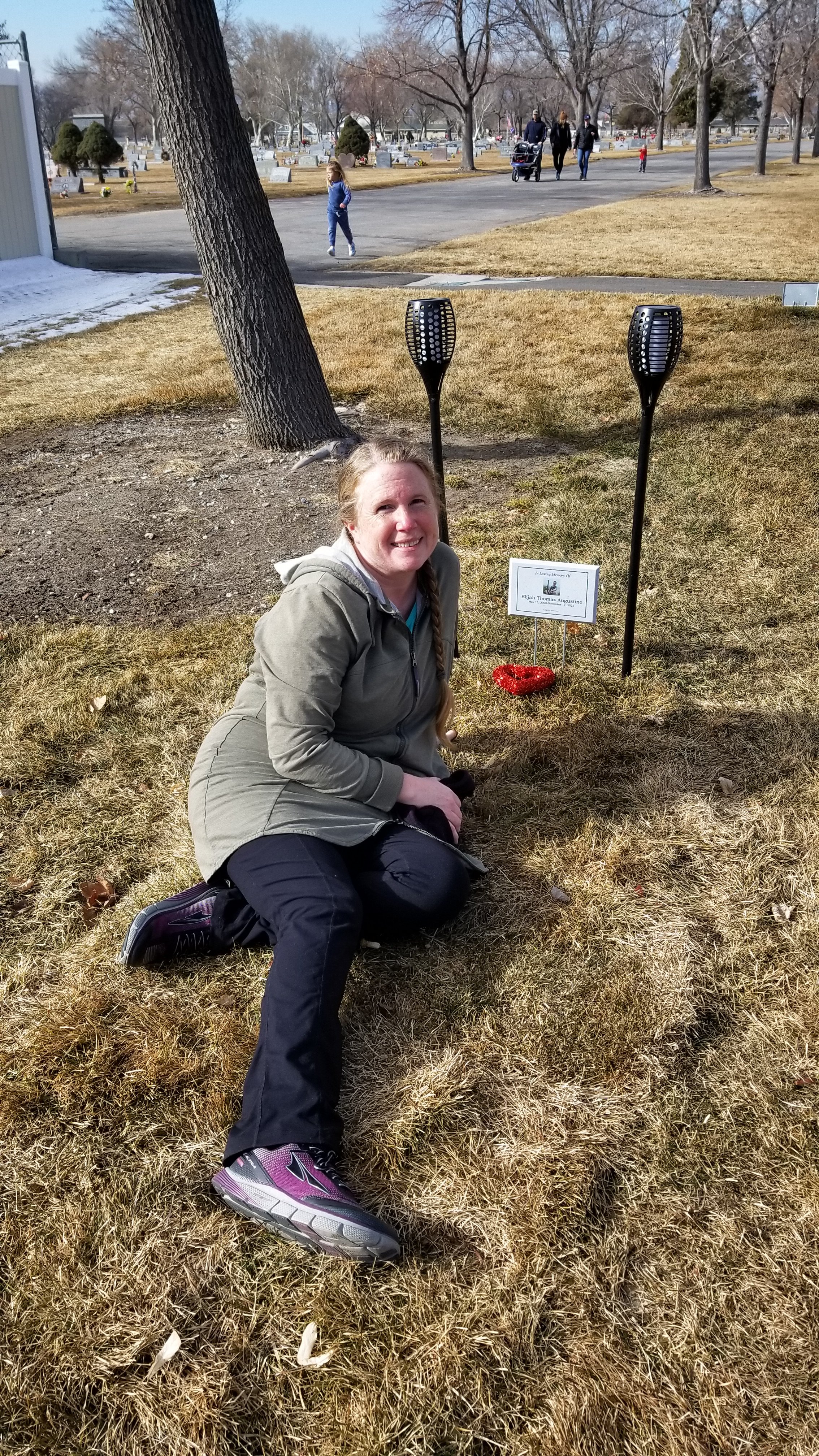 I walked with my friend to the cemetery today. We brought a hook to hang one of the Valentines that someone had left on Eli’s grave. Adam and I had discovered it several days ago when we had driven by.