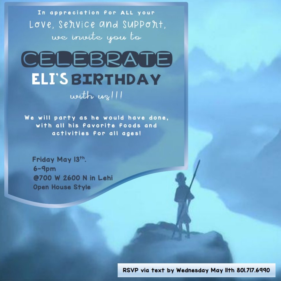 Happy birthday! We’ve decided to throw a birthday party in your honor on your birthday this Friday, May 13th. We know you wanted to throw a party for all the people who have supported you and our family throughout your cancer fight these last few years, in appreciation for everything they have done for us.